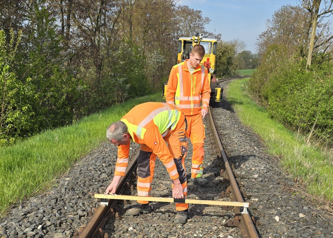 Kurz vor Saisonbeginn legen wir derzeit Hand an unseren Gleisanlagen an. Das jährliche Messprotokoll ist hierfür äußerst wertvoll. Zeigt es, gemessen in 1-Meter-Abständen, schonungslos auf, ob und ggf. wo Handlungsbedarf besteht.