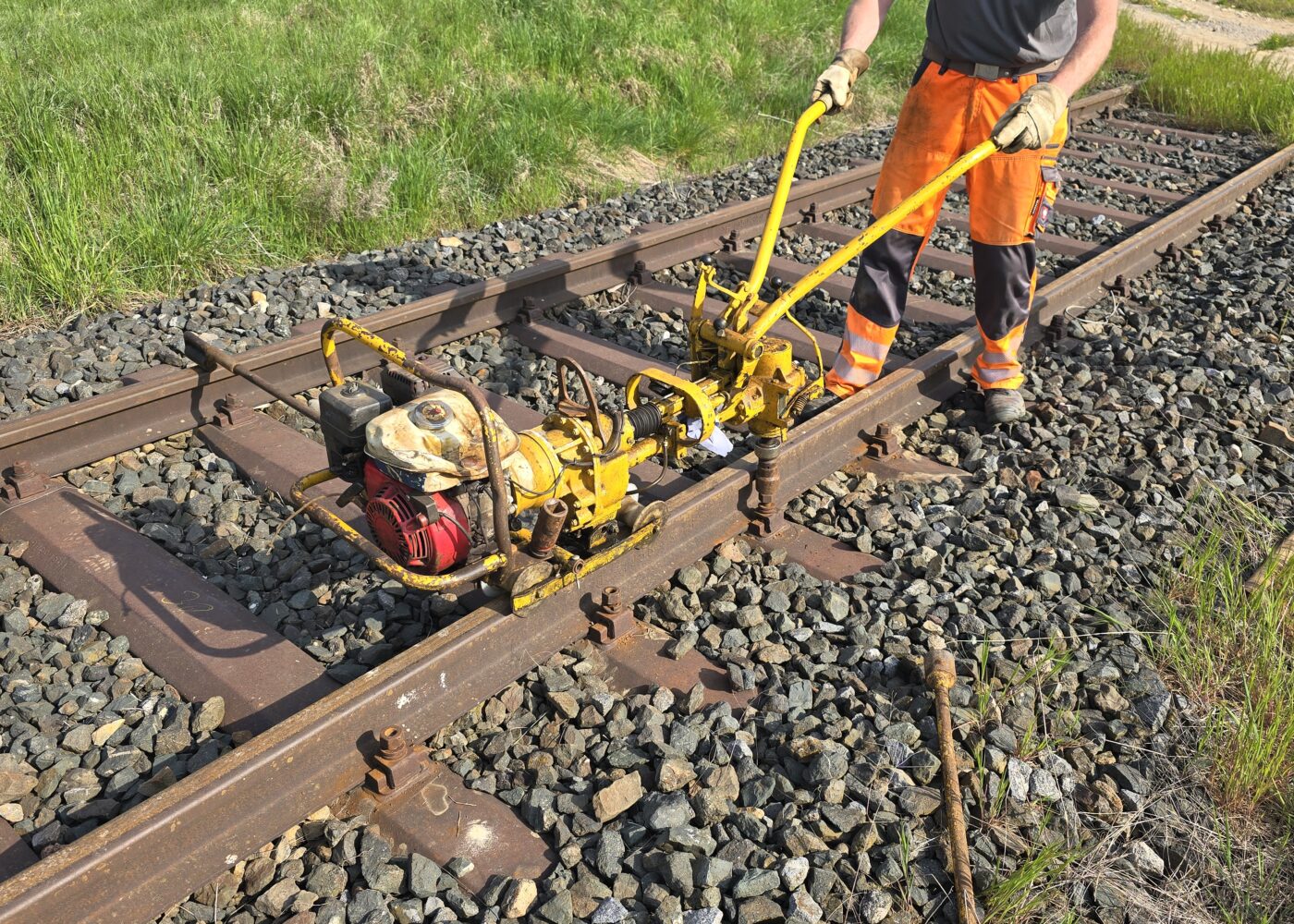 Das Zauberwort heisst deshalb „vorbeugende Instandhaltung“. Auch wenn der größte Teil unserer Strecke bereits durchgearbeitet ist, finden sich immer wieder kleiner Abschnitte mit alten, hölzernen Zwischenlagen. Zwischenlagen sind eine Art „Ausgleichsplatten“ zwischen Schiene und Schwelle und sichern die Spurweite und die Höhe des Geises. Früher aus Pappelholz (das nun langsam aber sicher ans Ende seiner Lebensdauer gelangt) – heute aus Kunststoff.