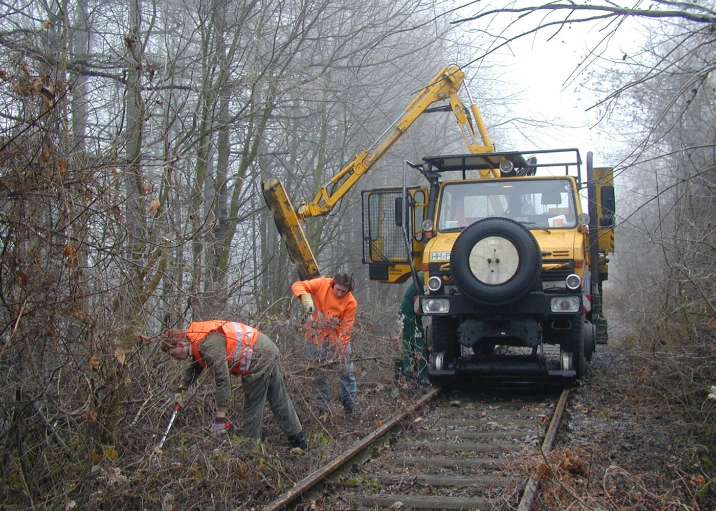 Als Arbeitsgerät kam ein Zweiwege‑Unimog mit hydraulischem Schwenkarm und vier rotierenden Sägeblättern zum Einsatz. Die Spezialfirma aus Ochsenfurt bot einen reduzierten Preis, unter der Bedingung, dass die Arbeiten in den letzten beiden Dezemberwochen durchgeführt werden, da das Fahrzeug in dieser Zeit nicht verplant war.