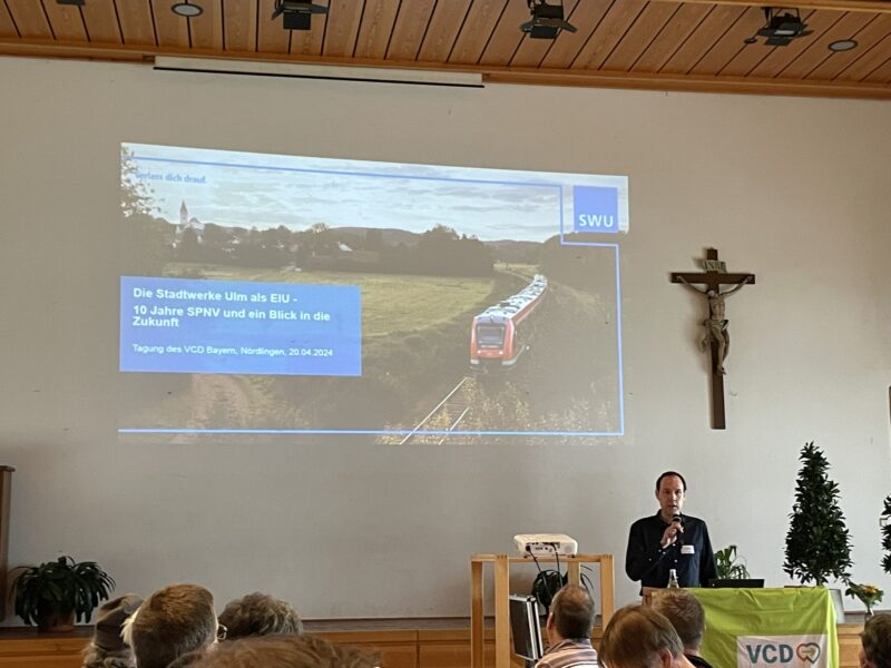 Paul Schiele (Abteilungsleiter Infrastruktur der Stadtwerke Ulm – SWU) schilderte nochmals die Reaktivierung der Strecke Senden – Weißenhorn (2011-2013): professionell, sparsam und ohne Goldrandlösungen! Auch die Grunderneuerung 2023 wäre so angepackt worden. Innerhalb von 6 Wochen wurden 14.400 Meter verschlissener Schienen und Schwellen (z.T. bis zu 130 Jahre alt) ersetzt, dazu 10 km Kabel umgebaut. Von den Kosten in Höhe von ca. 5 Mio. € förderte der Freistaat im Rahmen des RCZIPNE-Programms 3,7 Mio. Die Fahrgastnachfrage habe Ende 2023 die 2.000 erreicht, man fahre in den HVZ nun im Halbstundentakt. Die Entwurfsplanung für die Elektrifizierung der Strecke wäre in Arbeit, eine Inbetriebnahme sei von Seiten der SWU Ende 2028 möglich.